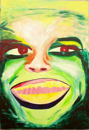 | Janine H36in W24in (H91cm W61cm) Dated 30-12-94 Price £50 $70 Acrylic on hardboard Photo by Margaret. This was very much a suck it and see picture. I am not proud of it and I do not think it is very good, but you have to start somewhere and I was re-learning to use my rusty tools and materials at a very fast rate. This painting was in the middle of the fast learning curve. |